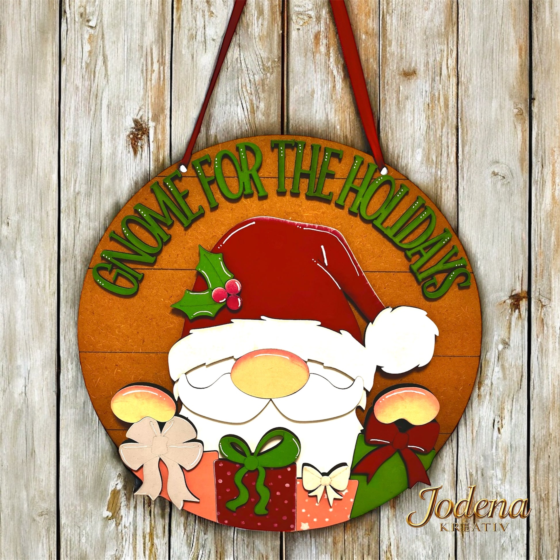 Mit dem Türschild „Gnome for the holidays“ bringst du weihnachtliche Freude direkt an deine Haustür. Der fröhliche Wichtel mit seinen liebevoll bemalten Geschenken zaubert jedem Besucher ein Lächeln ins Gesicht. Handgefertigt aus MDF-Holz – für langlebige, nachhaltige Deko statt kurzlebiger Massenware.